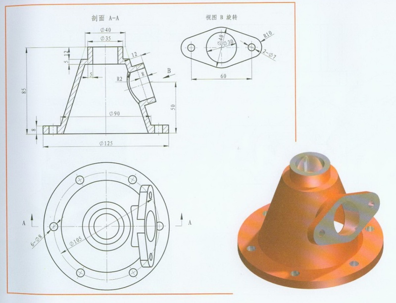 2、创建视图:投影视图、定向视图、辅助视图,详细视图旋转视图,半剖视图、阶梯剖、旋转剖、局部向视图、局部放大图;